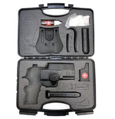 Затворная рама пистолета выполнена из стали AISI/SAE 4340, рамка - полимерная. Имеется возможность смены тыльных накладок на рукоять. Прицельные приспособления - целик с двумя белыми точками и мушка с белой точкой. Предусмотрена подствольная планка Пикатинни для крепления ЛЦУ, фонарика и т.п. аксессуаров.